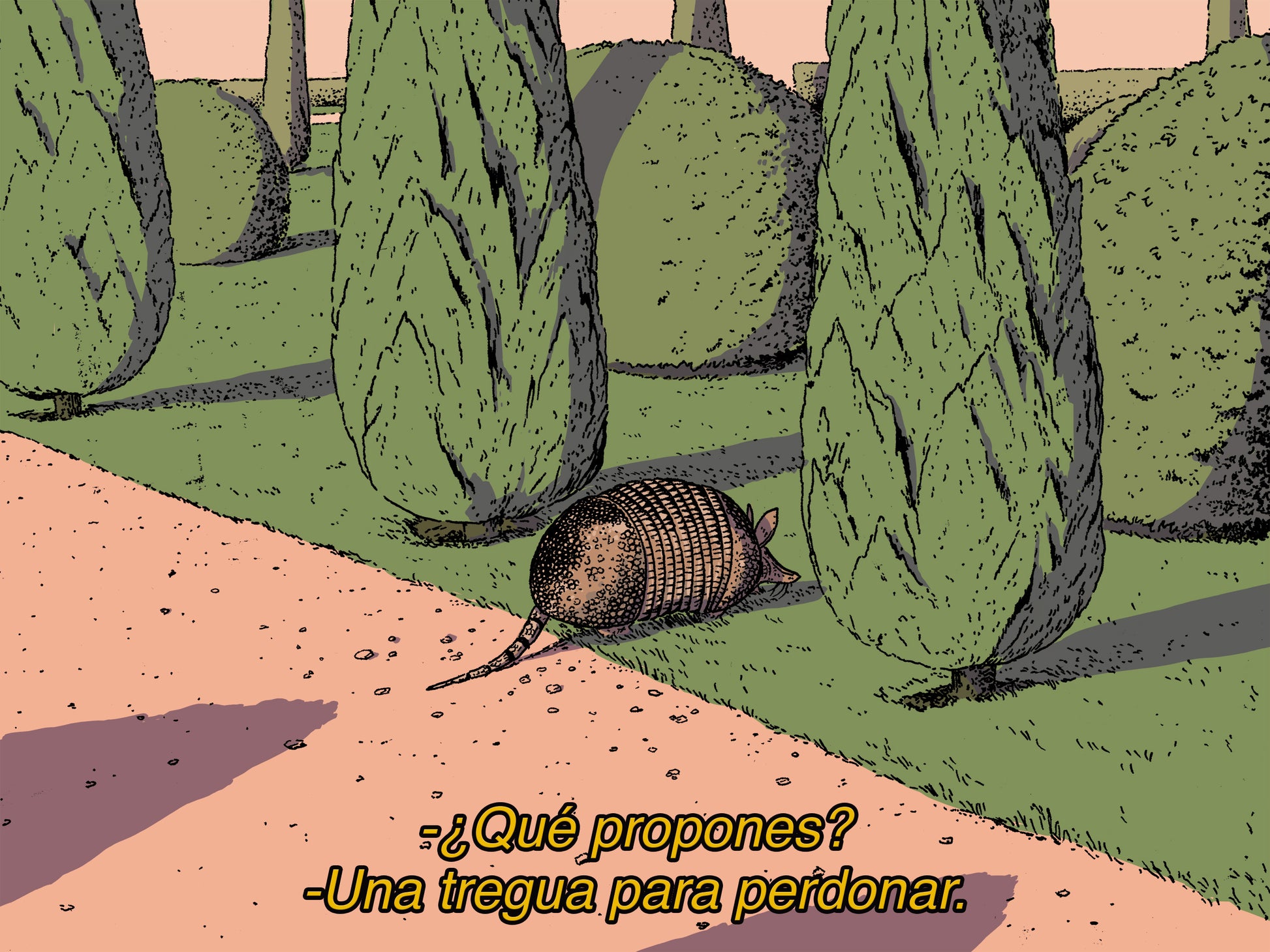 Fotogramas para películas es una serie de ocho ilustraciones en formato mediano que fusionan dos pasiones: los animales y el cine. Estas piezas nacen del interés por los fotogramas de películas compartidos en redes sociales, los cuales capturan fragmentos narrativos de una manera que antes del internet era poco común. Al extraer la temporalidad del medio cinematográfico, estos fotogramas se convierten en detonantes narrativos, invitando al espectador a imaginar las historias ficticias que habitan en ellos. Los subtítulos, presentes en las ilustraciones con una estética nostálgica de los años 90 y 2000, refuerzan esta conexión, evocando el acto de descubrir cine en idiomas desconocidos.